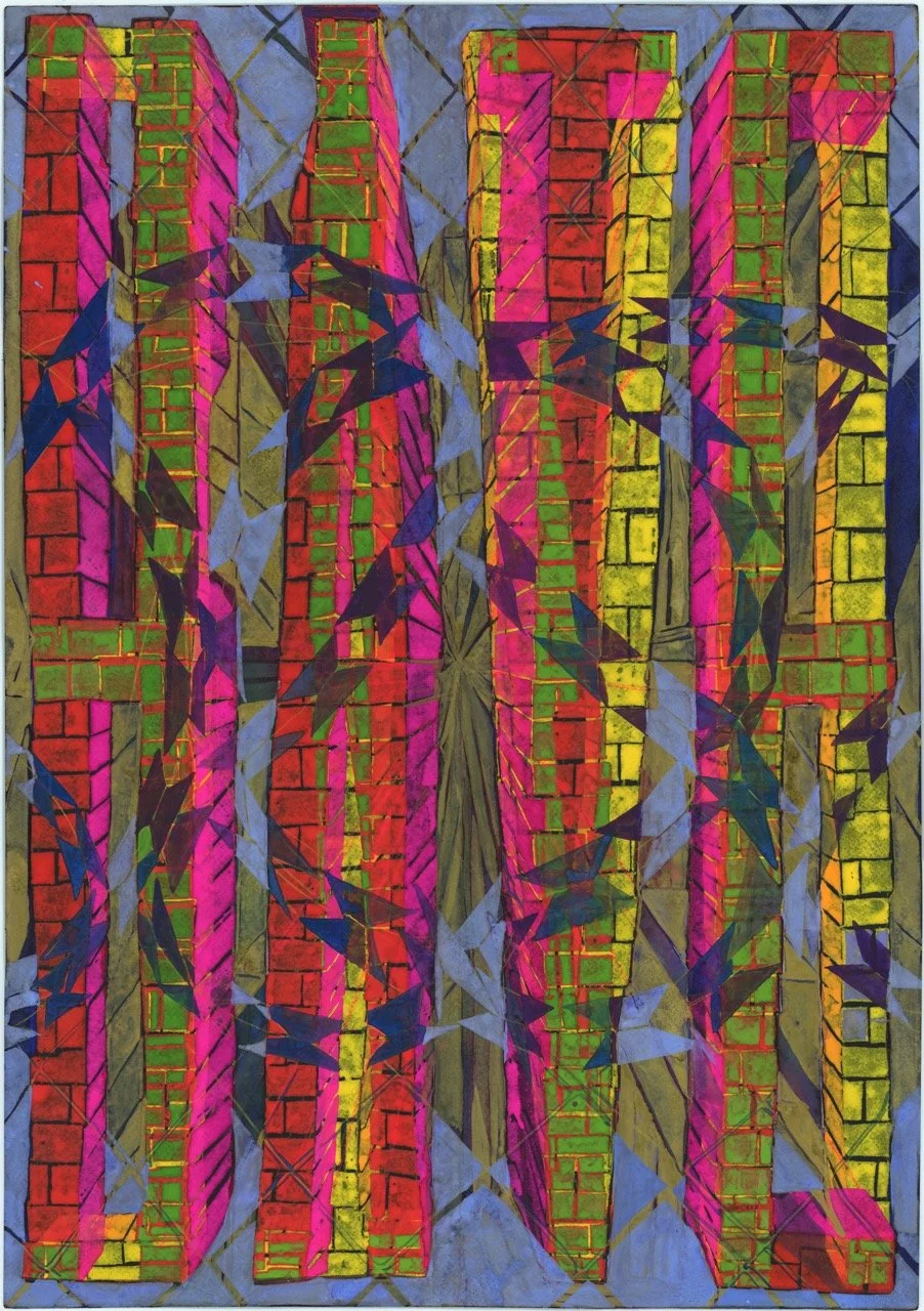 fortress with no rulers, 2025 gouache and colored pencil on paper, 30x22 inches